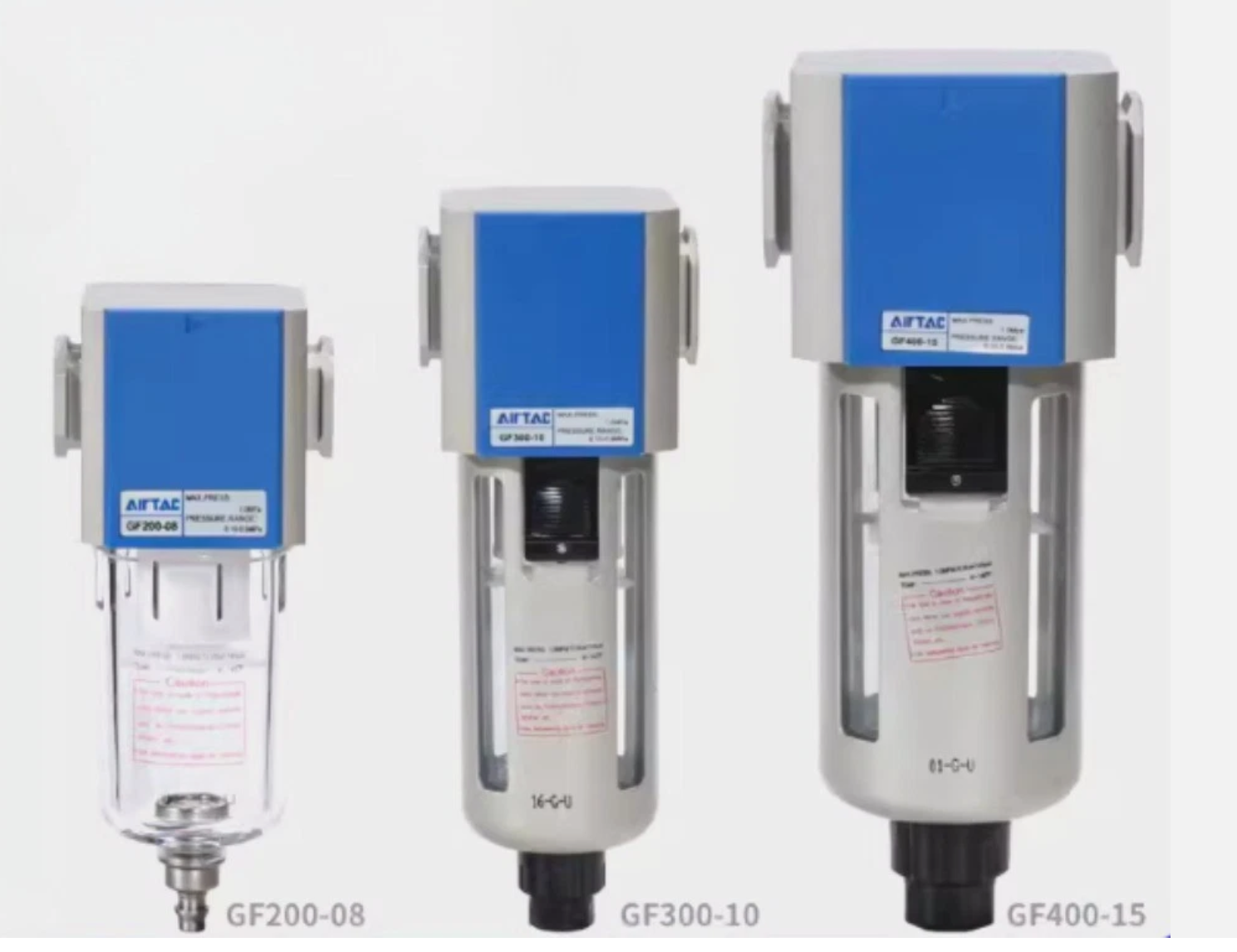 Bộ lọc khí airtac dòng GF hay còn gọi là bộ tách nước , bao gồm size ren 1/8, 3/8, 1/2, 3/4 và 1 in