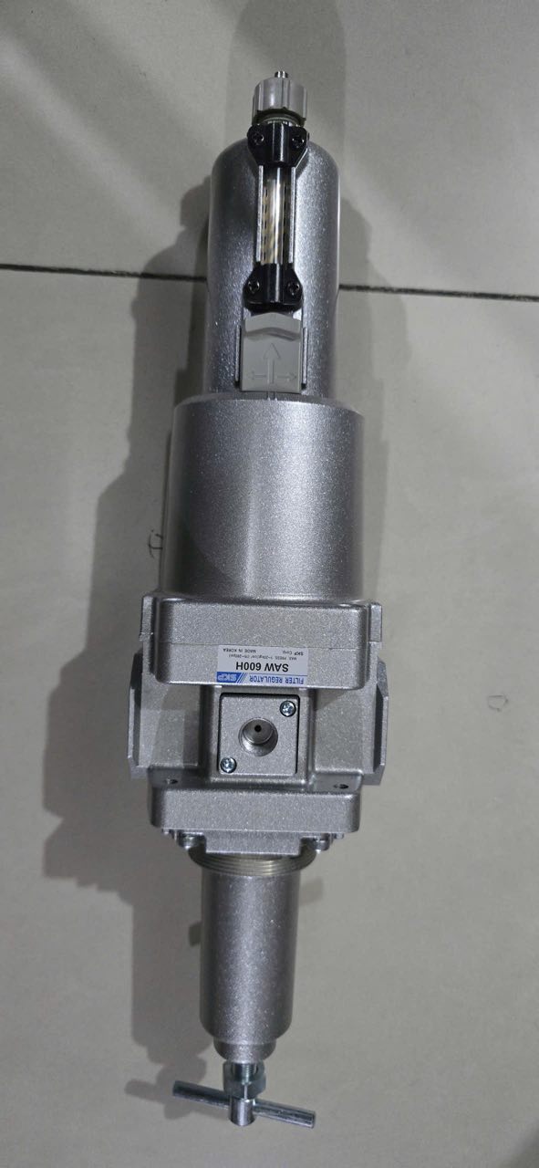 Bộ lọc đơn kết hợp điều áp SKP SAW 200H là dòng áp cao (tối đa 20kg/cm²), ren nối 1/4”, chuyên dùng cho hệ thống khí nén yêu cầu áp suất cao.