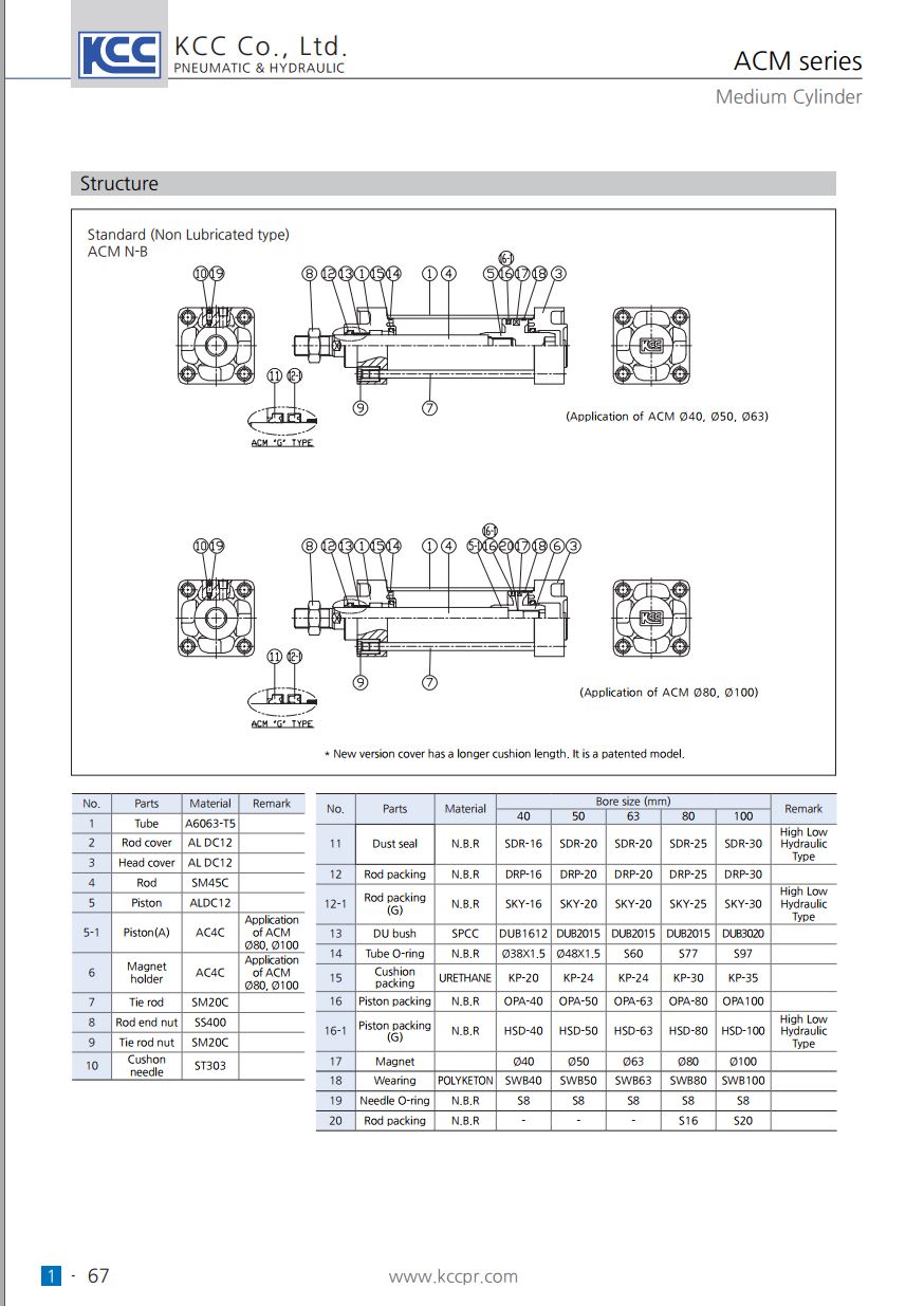 Xi Lanh Khí Nén Vuông KCC Ø80 - ACM-NB80 | Công Suất Lớn. ACM-NB80 – Dùng cho máy dập, máy ép, nâng hạ tải trung bình
